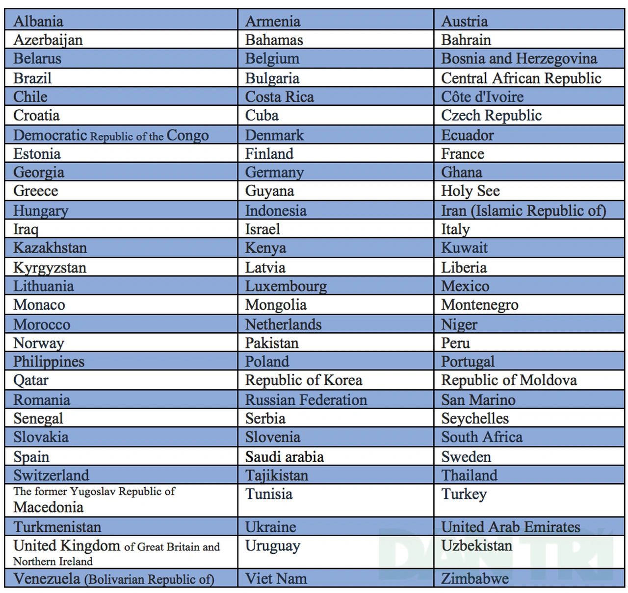 Danh sách các nước thành viên của Công ước Vienna 1968: